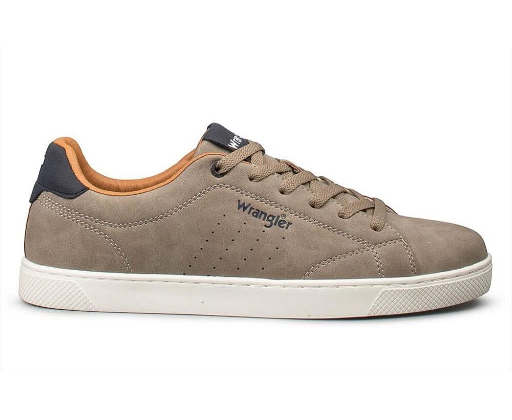 Ανδρικά sneakers Wrangler, σε taupe χρώμα.  Κατασκευασμένα από eco leather εξαιρετκής ποιότητας. Διαθέτουν την τεχνολογία Memory foam της εταιρείας Wrangler που παρέχει μαλακό και ελαφρύ πάτημα και ο εσωτερικός πάτος είναι αποσπώμενος για ευκολία στη χρήση. Πάτος αντιολισθητικός. Παπούτσια που δίνουν χαρακτήρα στο ντύσιμο σας με αυτοπεποίθηση και στυλ και θα σας  συνοδεύσουν σε κάθε casual εμφάνιση σας. Διαθέτουν σόλα ύψους 4 cm και κορδόνια τα οποία εξασφαλίζουν την τέλεια εφαρμογή.