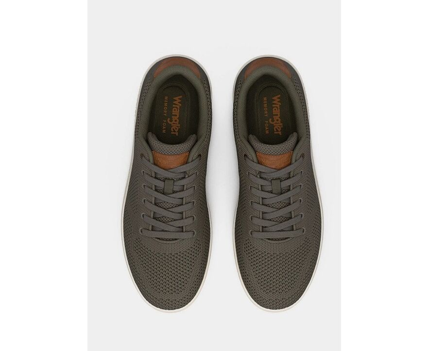 Ανδρικά sneakers Wrangler, σε λαδί χρώμα από άριστης ποιότητας υλικά, φιλικά προς το περιβάλλον. Ο αφρώδης πάτος απορροφάει τους κραδασμούς, προσφέροντας άνετο βάδισμα. Οι προσεγμένες λεπτομέρειες κάνουν τη διαφορά στα συγκεκριμένα παπούτσια.