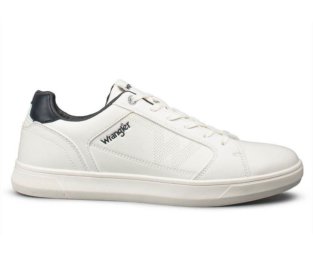 Ανδρικά sneakers Wrangler, σε λευκο χρώμα.  Κατασκευασμένα από eco leather εξαιρετκής ποιότητας. Διαθέτουν την τεχνολογία Memory foam της εταιρείας Wrangler που παρέχει μαλακό και ελαφρύ πάτημα και ο εσωτερικός πάτος είναι αποσπώμενος για ευκολία στη χρήση. Πάτος αντιολισθητικός. Παπούτσια που δίνουν χαρακτήρα στο ντύσιμο σας με αυτοπεποίθηση και στυλ και θα σας  συνοδεύσουν σε κάθε casual εμφάνιση σας. Διαθέτουν σόλα ύψους 4 cm και κορδόνια τα οποία εξασφαλίζουν την τέλεια εφαρμογή.