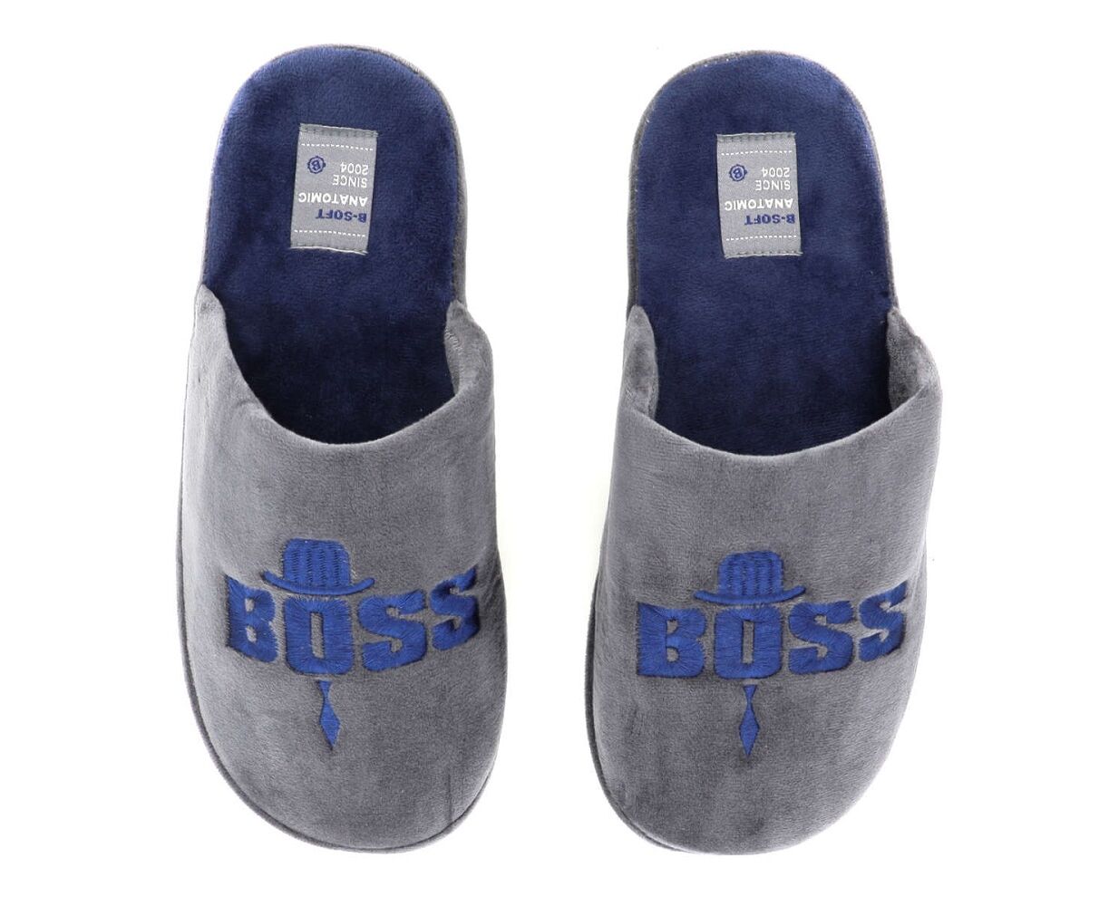 Aνδρικές παντόφλες σπιτιού B-SOFT με βελούδινη υφή σε μπλέ χρώμα.Έχουν πολύ μαλακό πάτο εσωτερικά και χονδρή σόλα εξαιρετικά σταθερή