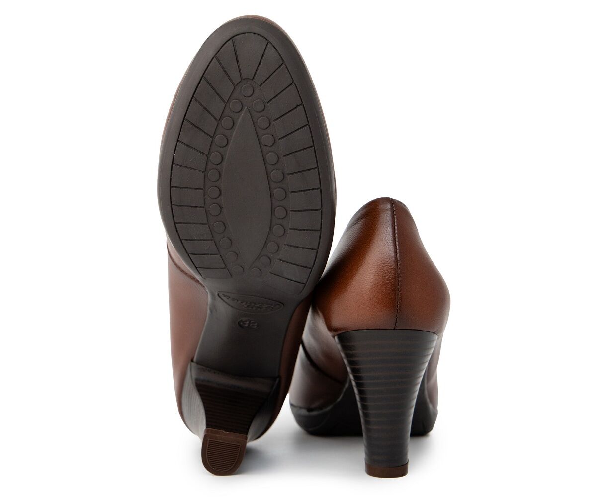 Γυναικείες γόβεςαπό την ελληνική εταιρία RAGAZZA, από γνήσιο δέρμα σε καφέ χρώμα. Ο πάτος του παπουτσιού είναι από δέρμα. Η σόλα από πολυουρεθάνη με την ειδική τεχνολογία που διαθέτει απορροφά τους κραδασμούς. Το ύψος του τακουνιού ειναι 7 cm.