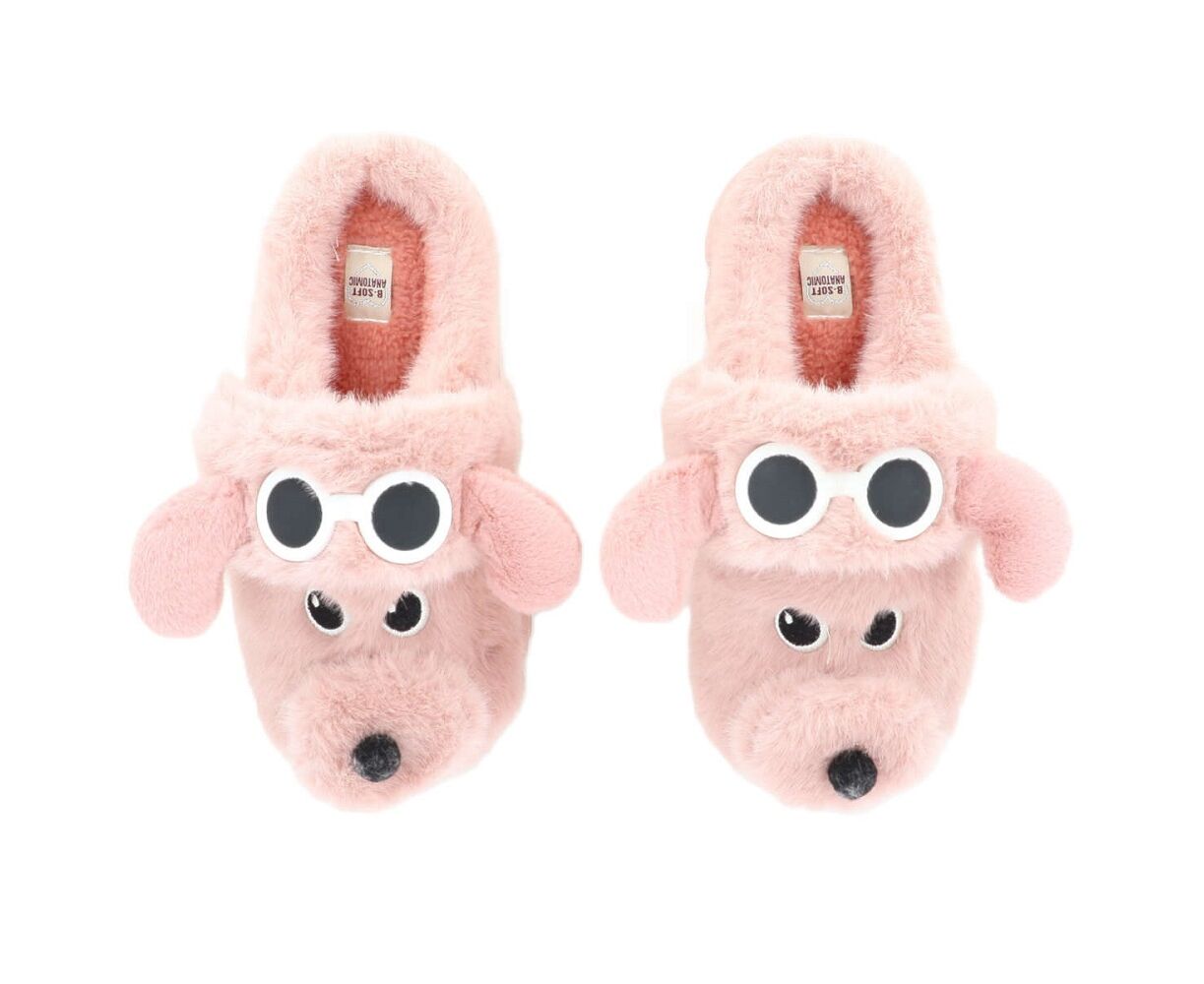 Γυναικείες παντόφλες B-SOFT σε ροζ απόχρωση με 3d σχέδιο ζωάκι. Χνουδωτές, σχεδιασμένες από μαλακό ύφασμα και ζεστή επένδυση. Προσφέρουν άνεση και ζεστασιά στο πόδι.