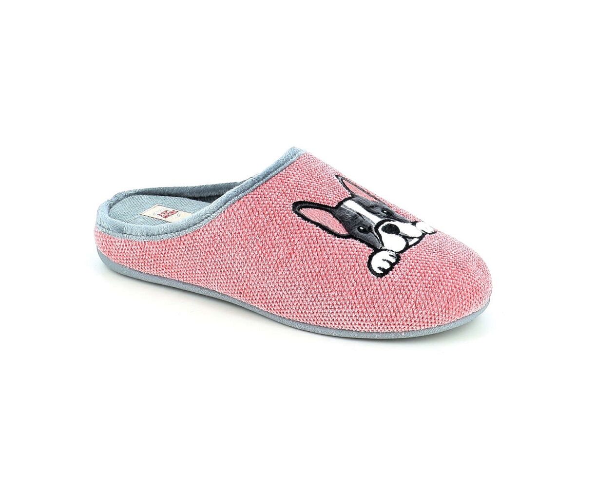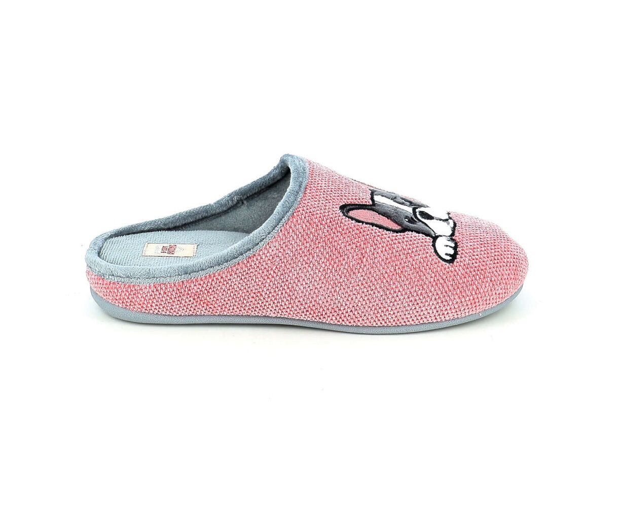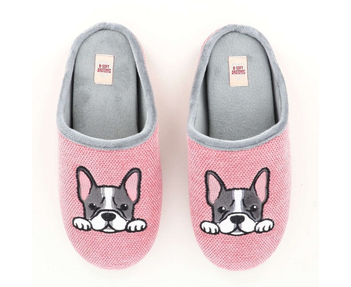 Γυναικείες παντόφλες B-SOFT σε ροζ απόχρωση με τυπωμένο σχέδιο με ζωάκι στο πάνω μέρος. Εξωτερικά είναι φτιαγμένες από μαλακό ύφασμα και εσωτερικά διαθέτουν βελούδινη, ζεστή επένδυση. Ο πάτος είναι αναπαυτικός και δε γλιστράει.