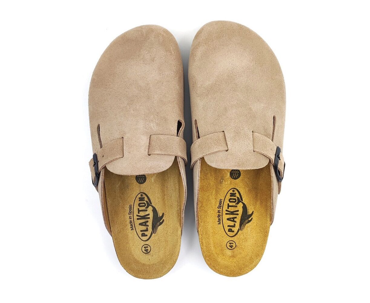 Γυναικείο σαμπό PLAKTON σε μπεζ χρώμα, κατασκευασμένο από δέρμα, με ανατομικό πάτο.