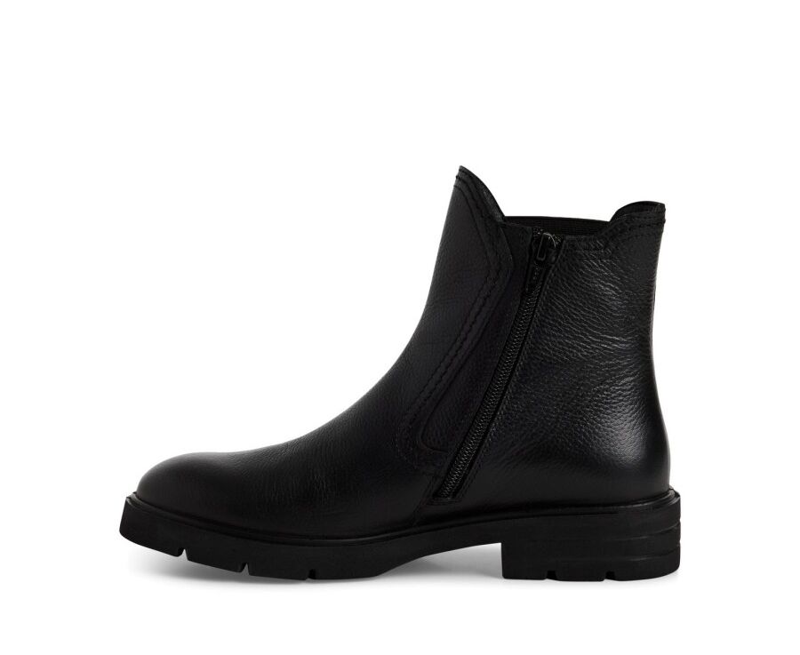 Γυναικεία μποτάκια του οίκου TAMARIS σε μαύρο χρώμα. Κατασκευασμένο από δέρμα. Διαθέτει τεχνολογία Touch-it που το καθιστά αντιολισθητικό με μαλακό πάτο. Το ύψος του τακουνιού είναι 3.5 εκ