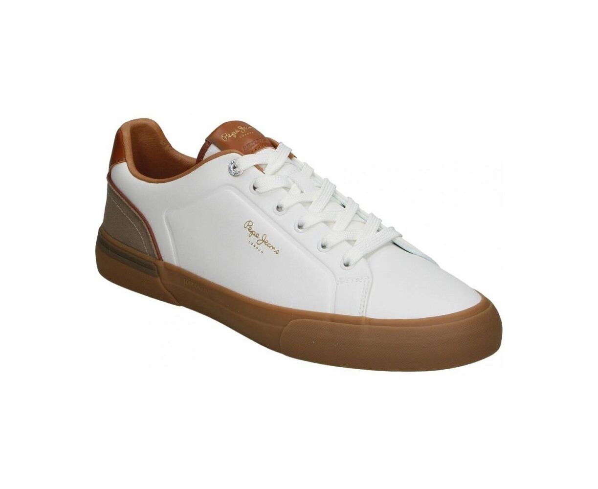 Ανδρικό παπούτσι Sneakers σε λευκό χρώμα, της εταιρείας Pepe Jeans. Κατασκευασμένα από συνθετικό δέρμα με κορδόνια. Για casual εμφανίσεις, με άνετη σόλα για ελαφρύ περπάτημα. Άνετα για casual και σπορ εμφανίσεις