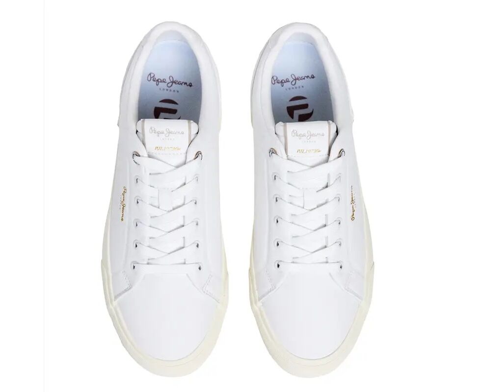 Ανδρικό παπούτσι Sneakers σε λευκό χρώμα, της εταιρείας Pepe Jeans. Κατασκευασμένα από συνθετικό δέρμα με κορδόνια. Για casual εμφανίσεις, με άνετη σόλα για ελαφρύ περπάτημα. Άνετα για casual και σπορ εμφανίσεις