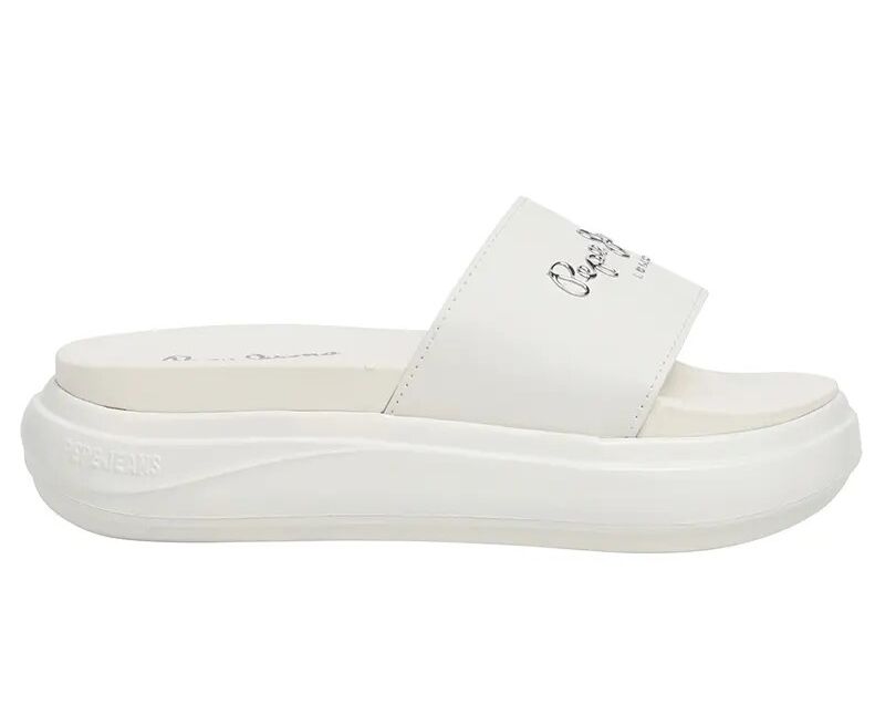 Γυναικεία παντόφλα σε λευκό χρώμα, της επώνυμης εταιρείας Pepe jeans.