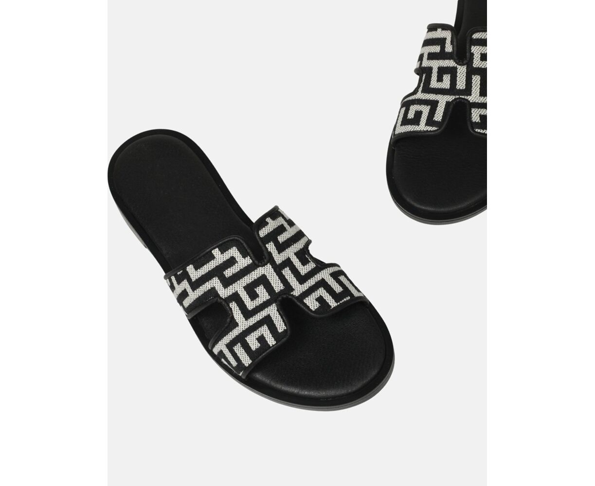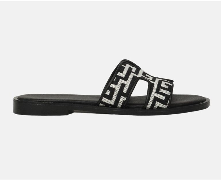 Γυναικεία Flat σανδάλια Ελληνικής κατασκευής, με μοτίβο μαιάνδρου. Διαθέτουν αφρώδη πάτο και ελαστική αντιολισθητική σόλα για άνετο βάδισμα.