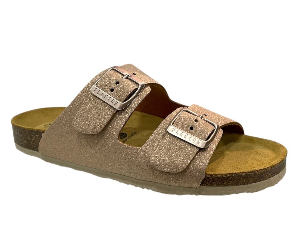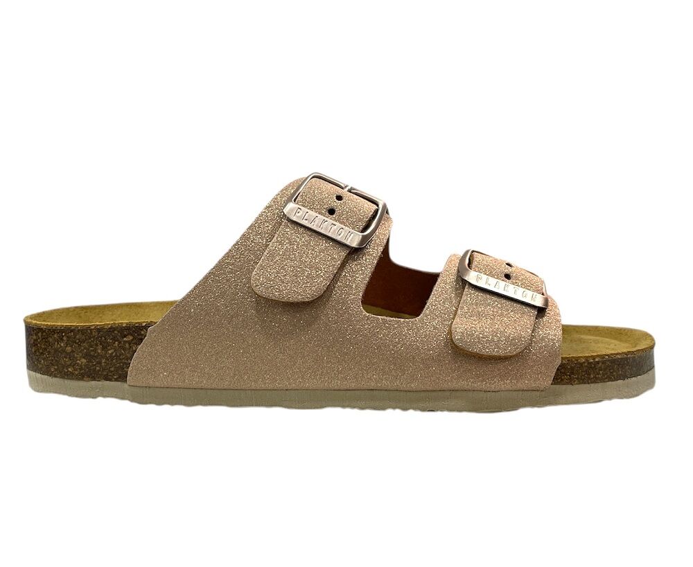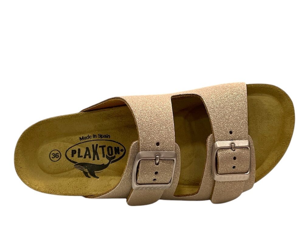 Ανατομικά σανδάλια PLAKTON από δέρμα, Διαθέτει διπλό λουρί στο μπροστινό μέρος με λεπτομέρεια μεταλλικές αγκράφες.Ο ανατομικός πάτος από φυσικό φελλό, σε συνδυασμό με το εσωτερικό δερμάτινο πατάκι θα κάνει το βάδισμα σας ποιό άνετο.